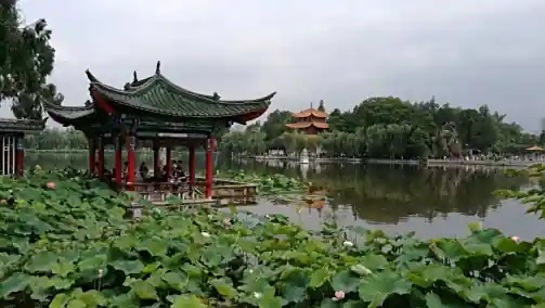 翠湖公园,位于昆明市区的螺峰山下,五华山西麓,云南大学正门对面,原名菜海子。这里最初曾是滇池中的一个湖湾,后来因水位下降而成为一汪清湖。 翠湖水光潋滟,绿树成荫,楼现波心,环境优美,是昆明城内的一颗绿宝石。享有城中之玉的美称。 元朝以前,滇池水位高,这里还属于城外的小湖湾,多稻田、菜园、莲池,故称"菜海子"。因东北面有九股泉,汇流成池,又名"九龙池"。 到民国初年,改辟为园,园内遍植柳树,湖内多种荷花,始有"翠湖"美称。